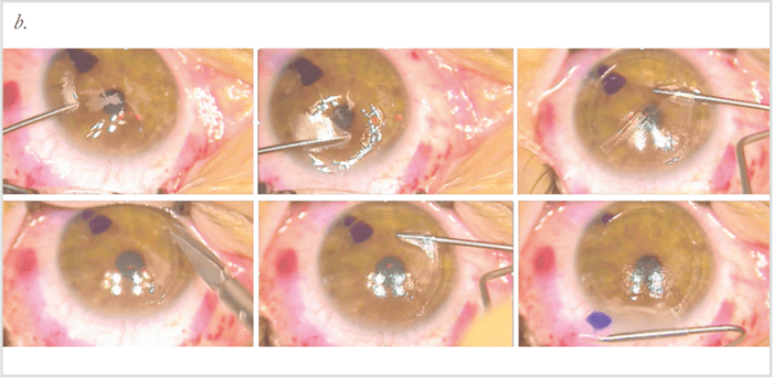 - Completing the case (Figure 1b); I started dissecting the flap on the side where I knew my raster pattern and side cut were normal. Coming from all angles, I was able to dissect carefully under most of the flap without issues. There was some incomplete dissection (about one clock hour) but I was able to complete the side cut with Vannas scissors. The stromal bed looked great and I was able to proceed with the case – and the patient had a great outcome.