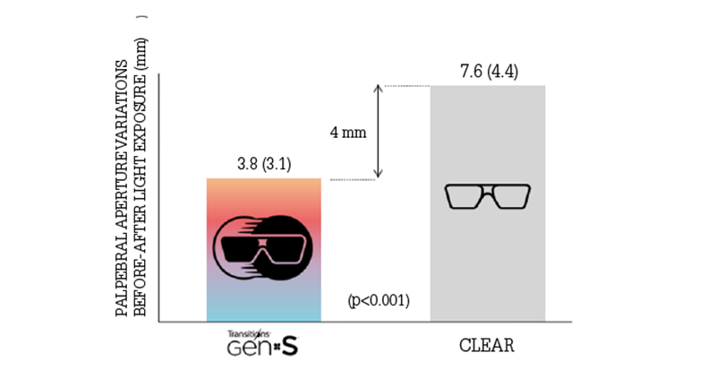 Figure 3. Palpebral aperture variation (mm) before and after light exposure with Transitions Gen S and with a static clear lens